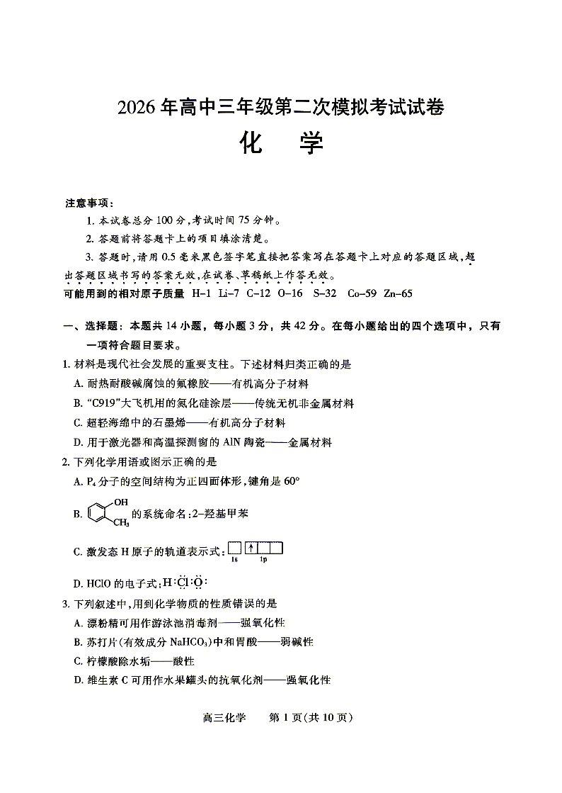 河南省濮阳市2026届高三第二次模拟考试 化学.pdf