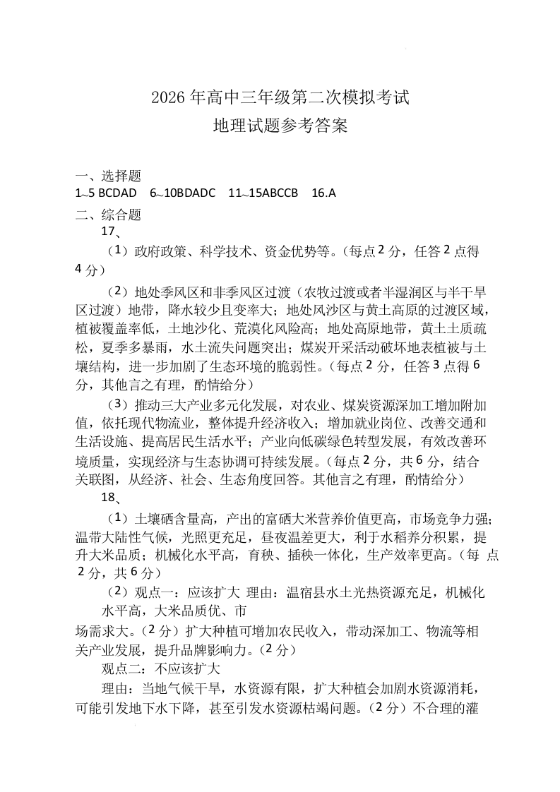 河南省濮阳市2026届高三第二次模拟考试 地理答案.docx