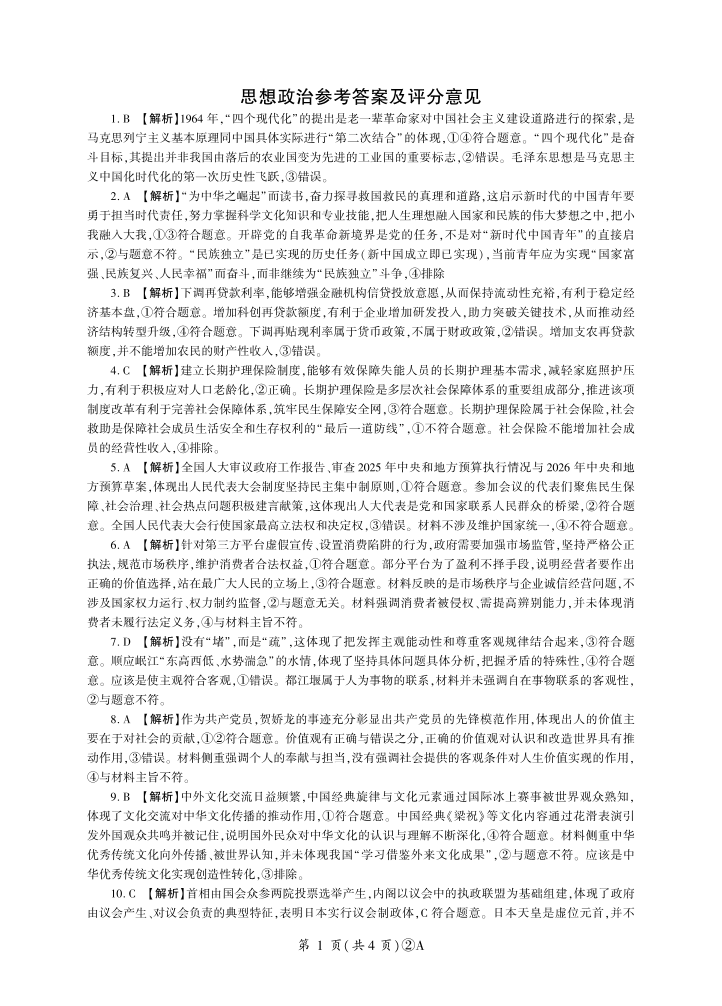 百师联盟2026届高三4月22日适应性模拟考试_政治答案.pdf