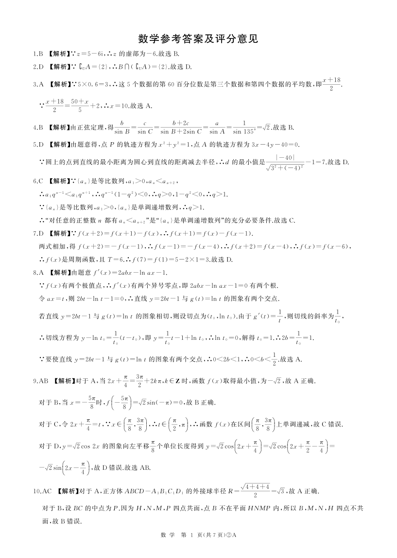 百师联盟2026届高三4月22日适应性模拟考试_数学答案.pdf