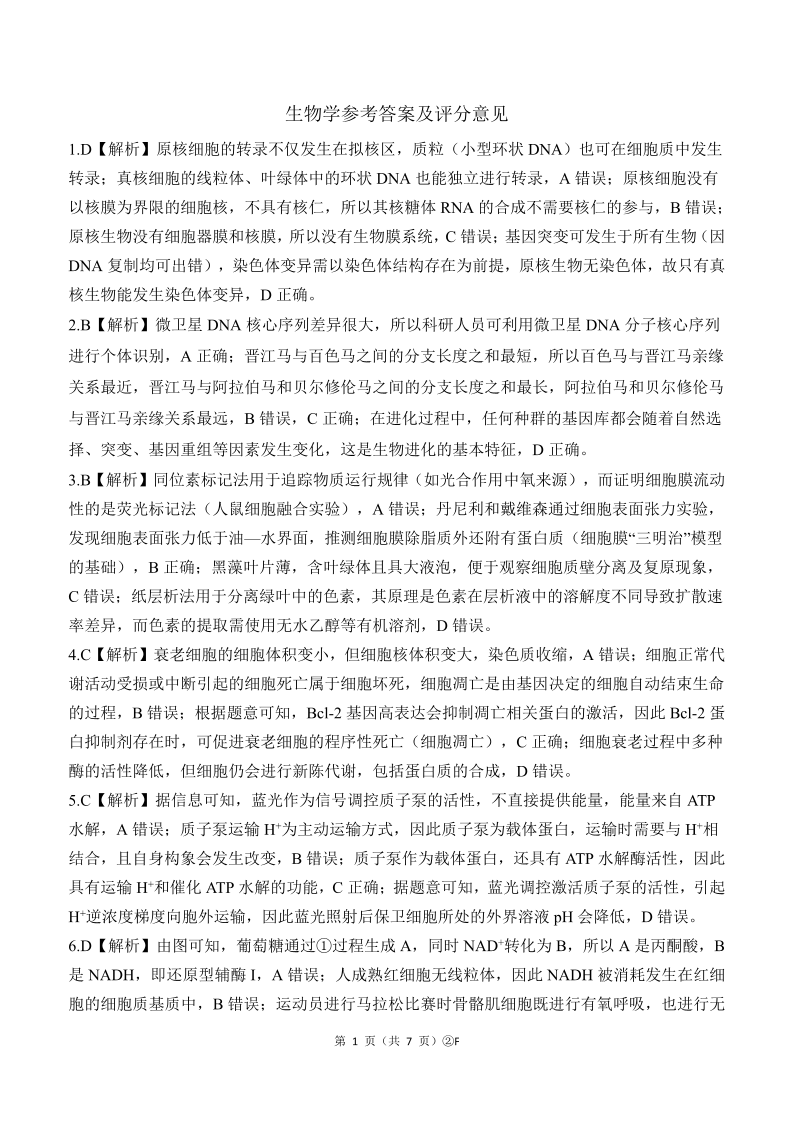 百师联盟2026届高三4月22日适应性模拟考试_生物学答案.pdf