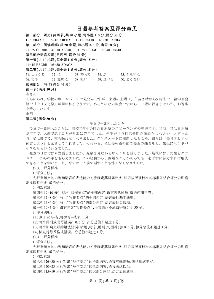 百师联盟2026届高三4月22日适应性模拟考试_日语答案.pdf