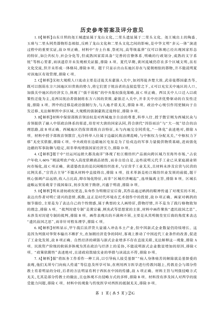 百师联盟2026届高三4月22日适应性模拟考试_历史答案.pdf