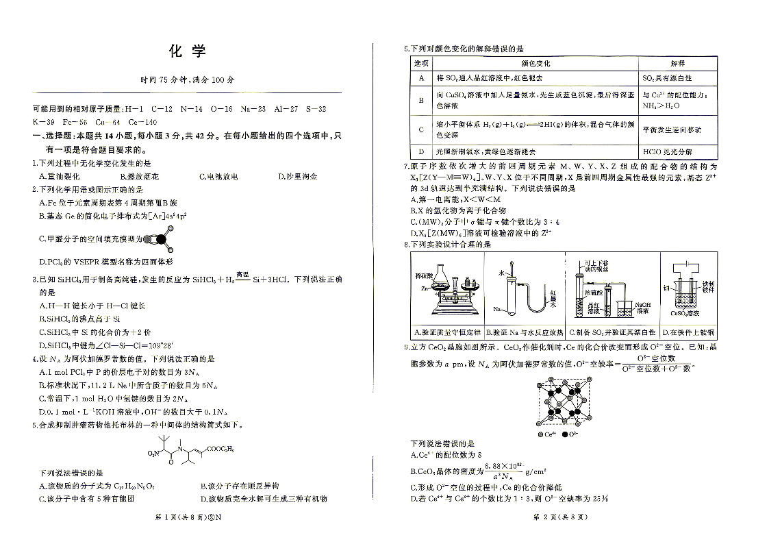 百师联盟2026届高三4月22日适应性模拟考试_化学.pdf