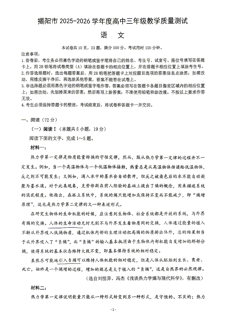 揭阳市2025-2026学年度高三年级教学质量测试 语文.pdf