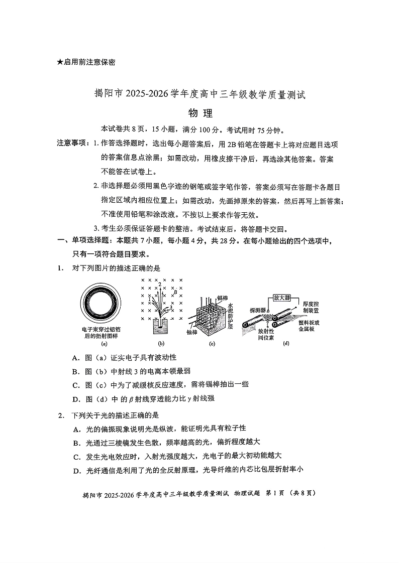 揭阳市2025-2026学年度高三年级教学质量测试 物理.pdf