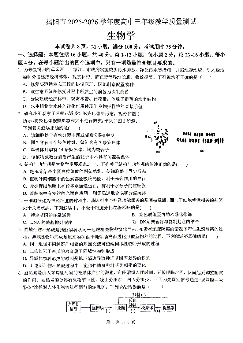 揭阳市2025-2026学年度高三年级教学质量测试 生物.pdf