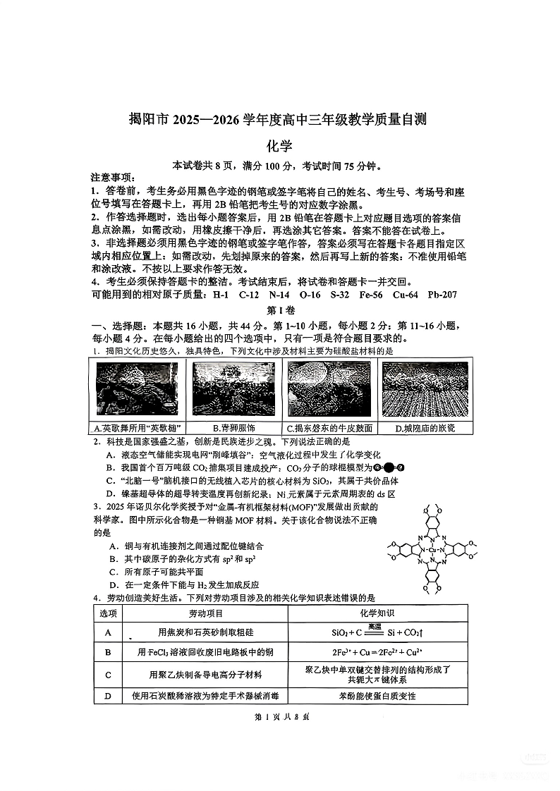揭阳市2025-2026学年度高三年级教学质量测试 化学.pdf