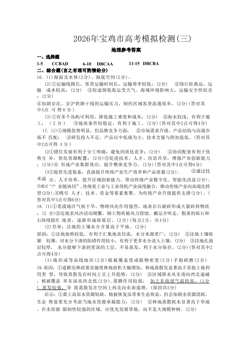 陕西省宝鸡市2026届高三下学期模拟检测(三)地理答案.pdf