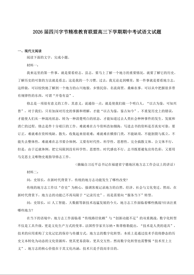 字节精准教育联盟2026届高三下学期4月期中考试 语文试题(含答案).docx