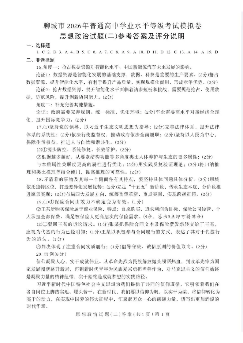 聊城市2026年普通高中学业水平等级考试模拟卷 政治答案.pdf