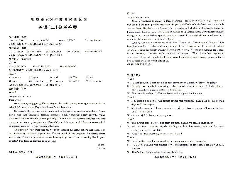 聊城市2026年普通高中学业水平等级考试模拟卷 英语答案.pdf