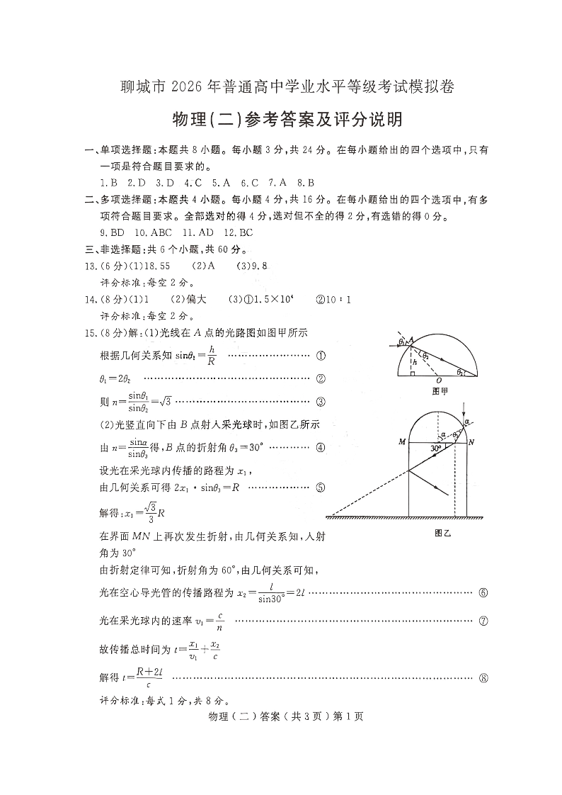 聊城市2026年普通高中学业水平等级考试模拟卷 物理答案.pdf