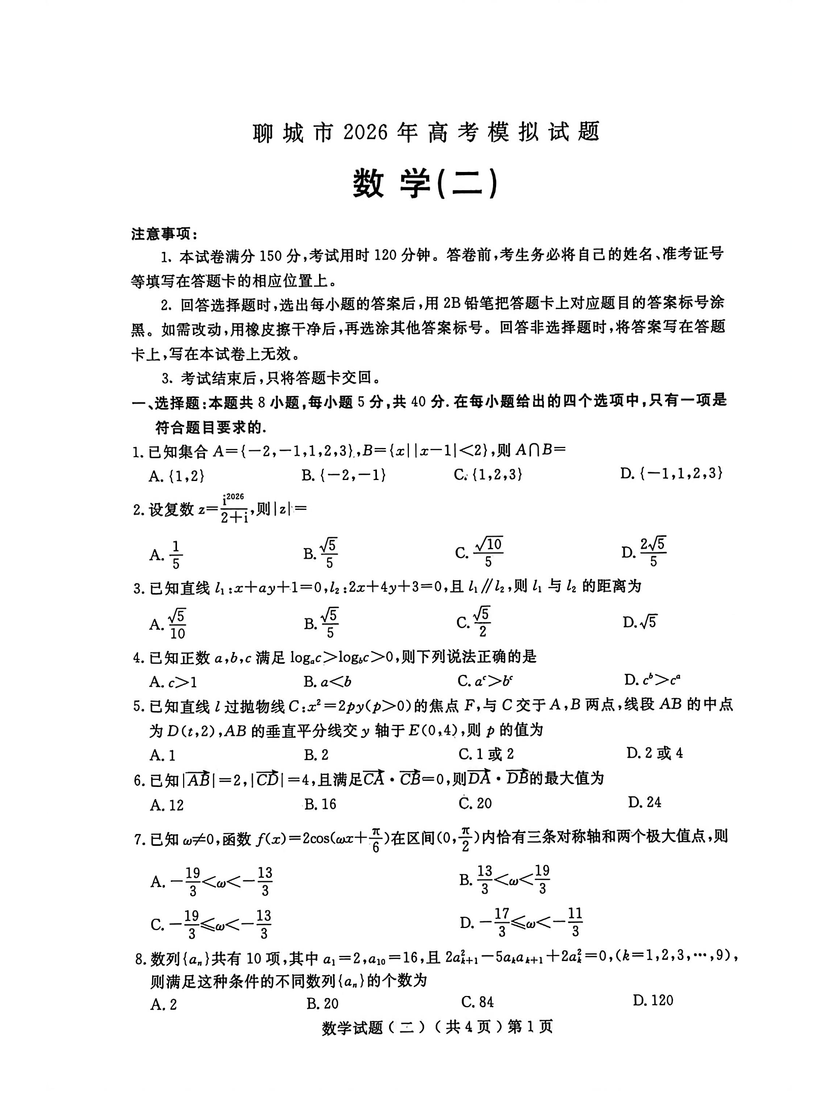 聊城市2026年普通高中学业水平等级考试模拟卷 数学.pdf