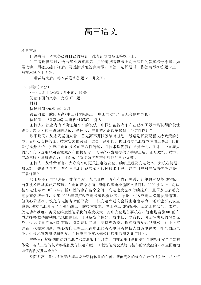 湖南省长沙市第一中学2026届高三下学期第九次月考 语文.docx