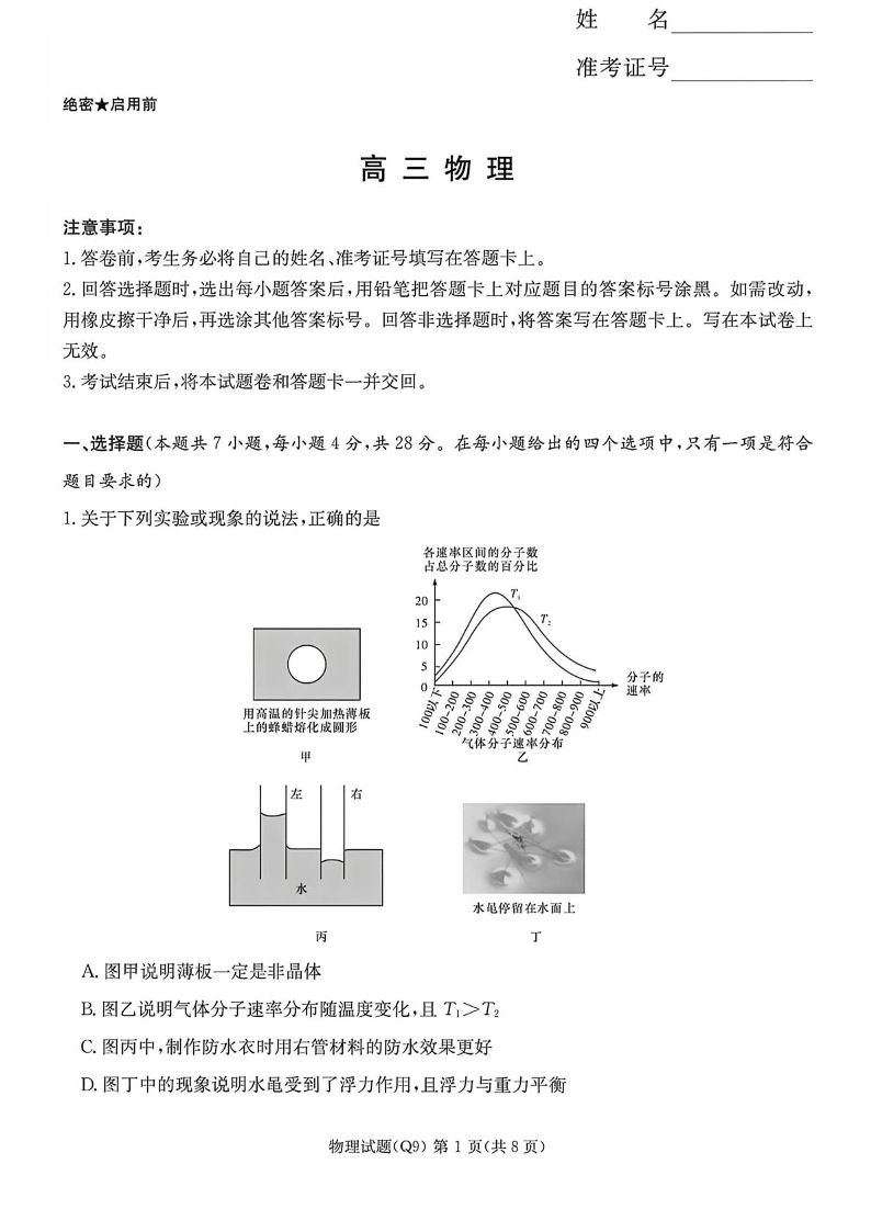 湖南省长沙市第一中学2026届高三下学期第九次月考 物理.pdf