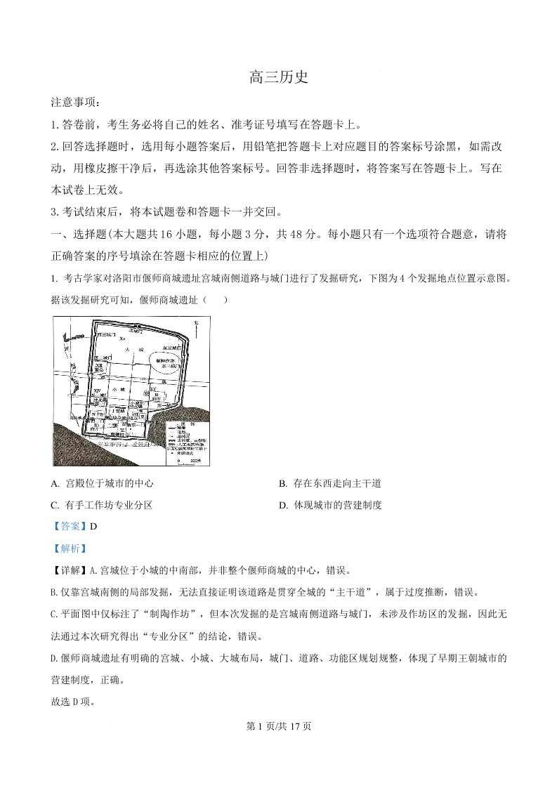 湖南省长沙市第一中学2026届高三下学期第九次月考 历史答案.docx