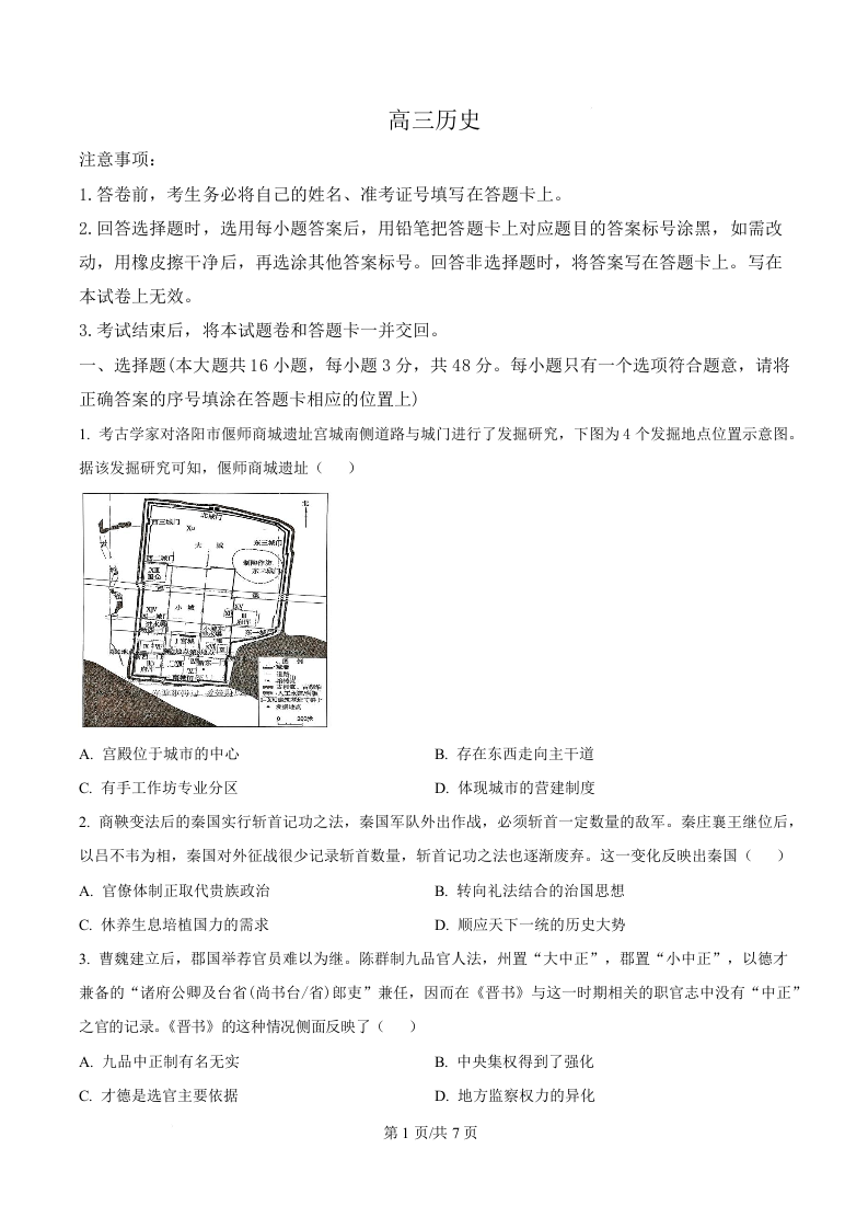 湖南省长沙市第一中学2026届高三下学期第九次月考 历史.docx