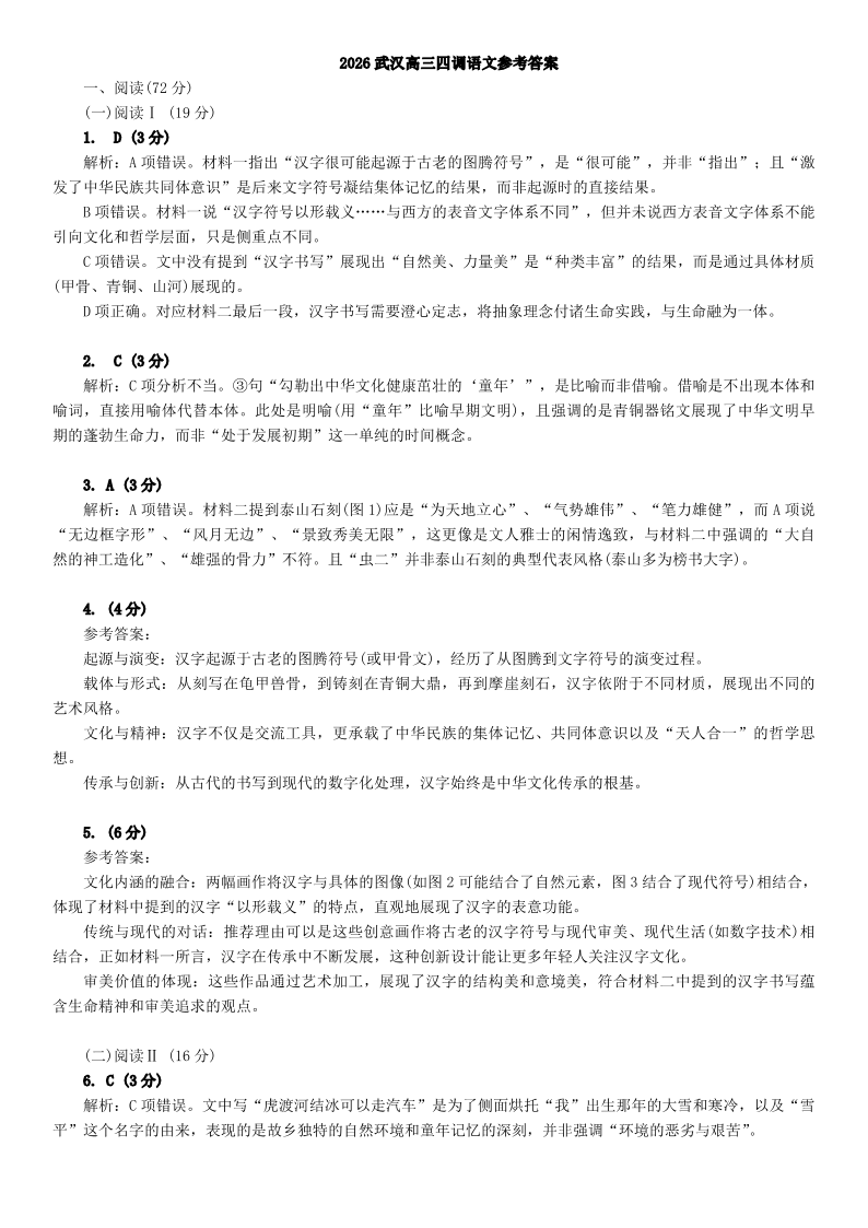 湖北省武汉市2026届高三年级四月供题 语文答案.pdf