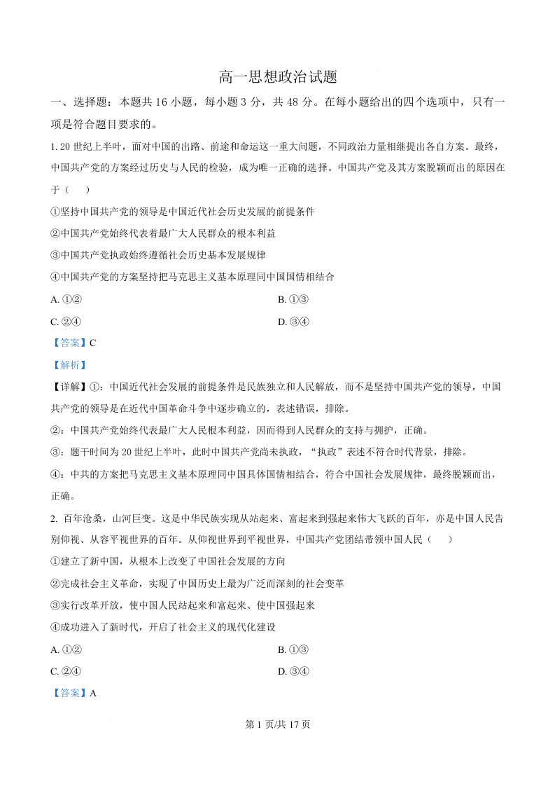 湖北省鄂北六校2025-2026学年高一下学期期中联考 政治答案.docx