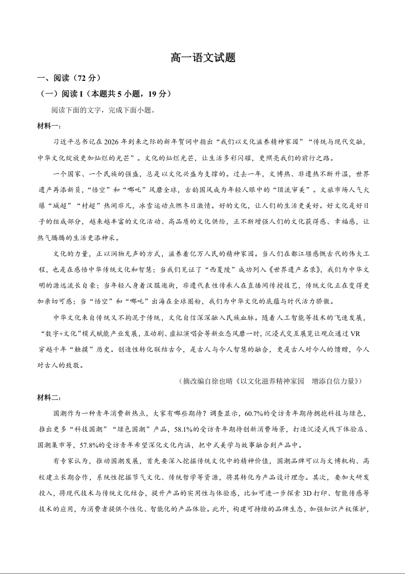 湖北省鄂北六校2025-2026学年高一下学期期中联考 语文.docx