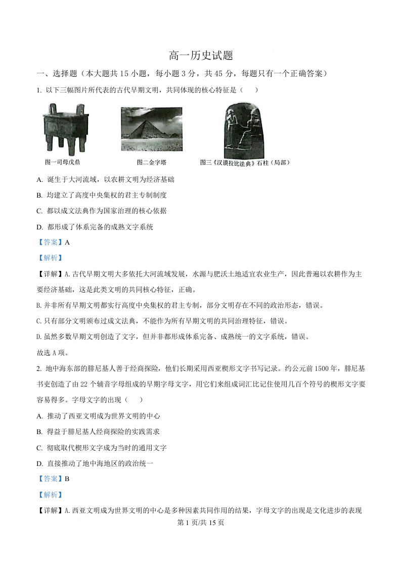 湖北省鄂北六校2025-2026学年高一下学期期中联考 历史答案.docx