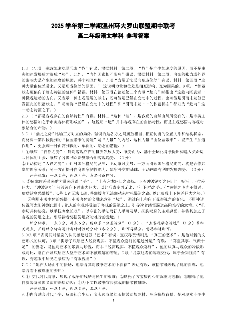 浙江省温州市环大罗山联盟2025学年第二学期高二年级期中联考 语文答案.pdf