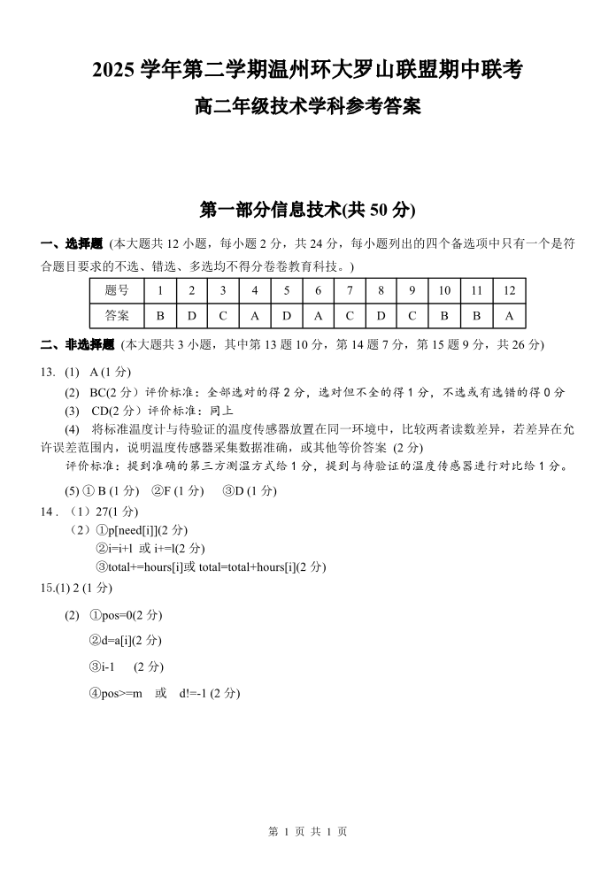 浙江省温州市环大罗山联盟2025学年第二学期高二年级期中联考 信息技术答案.pdf