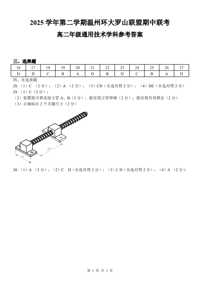 浙江省温州市环大罗山联盟2025学年第二学期高二年级期中联考 通用技术答案.pdf