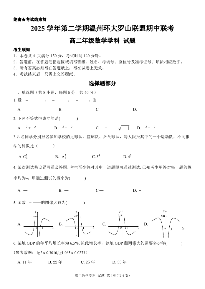 浙江省温州市环大罗山联盟2025学年第二学期高二年级期中联考 数学.pdf