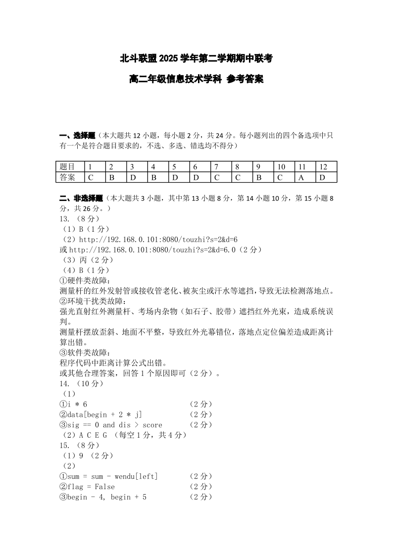 浙江省杭州市北斗联盟2025学年第二学期高二年级期中联考 信息技术答案.pdf