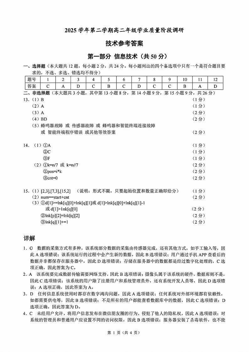 浙江省9+1联盟2025学年第二学期高二年级学业质量阶段调研 技术答案.pdf