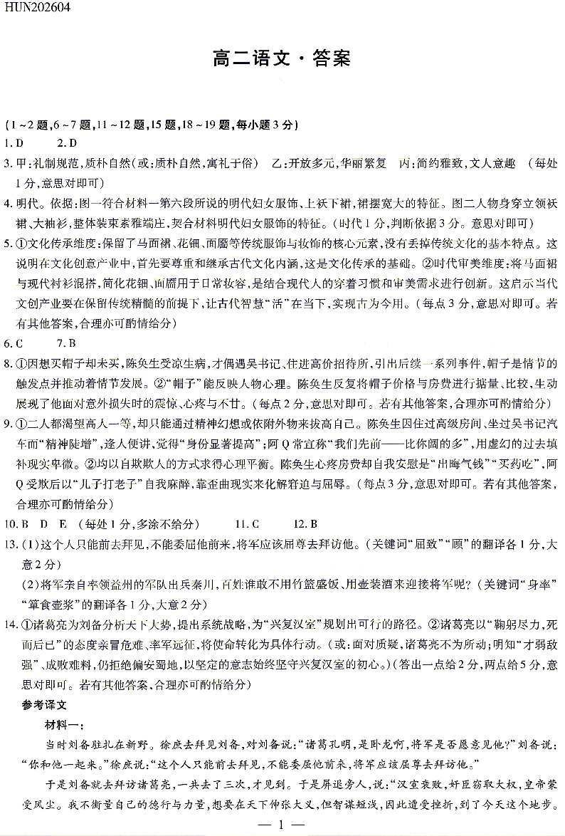 湖南省湘一名校联盟2026年高二年级4月联考 语文答案.pdf