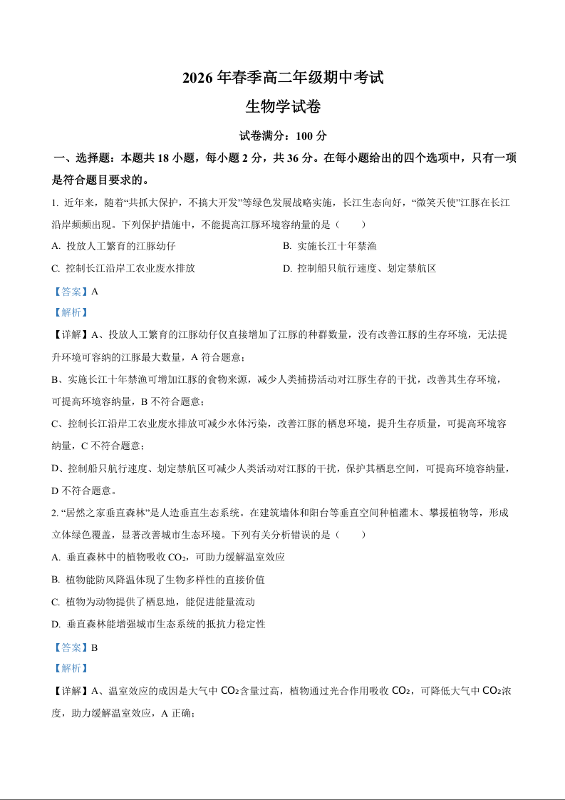 湖北省鄂东南联盟2025-2026学年高二下学期期中联考 生物答案.docx