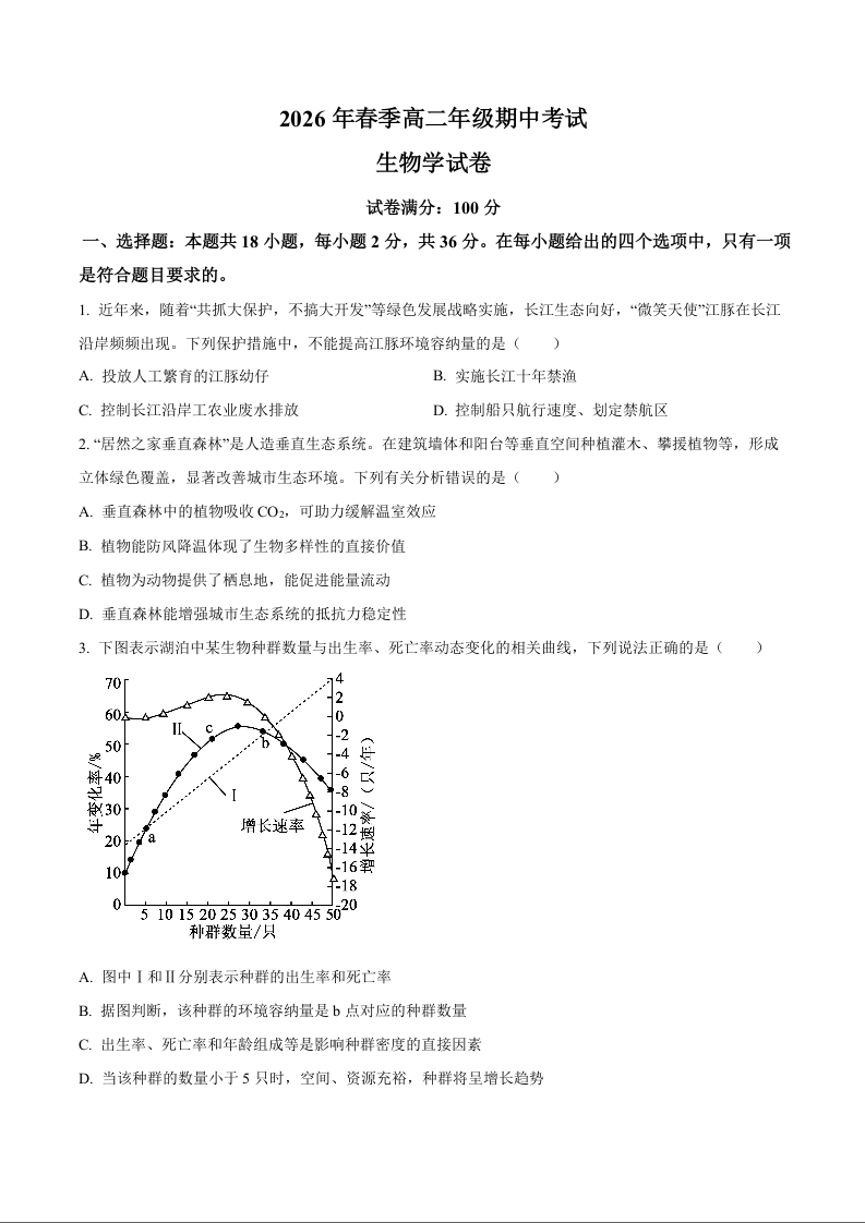 湖北省鄂东南联盟2025-2026学年高二下学期期中联考 生物.docx