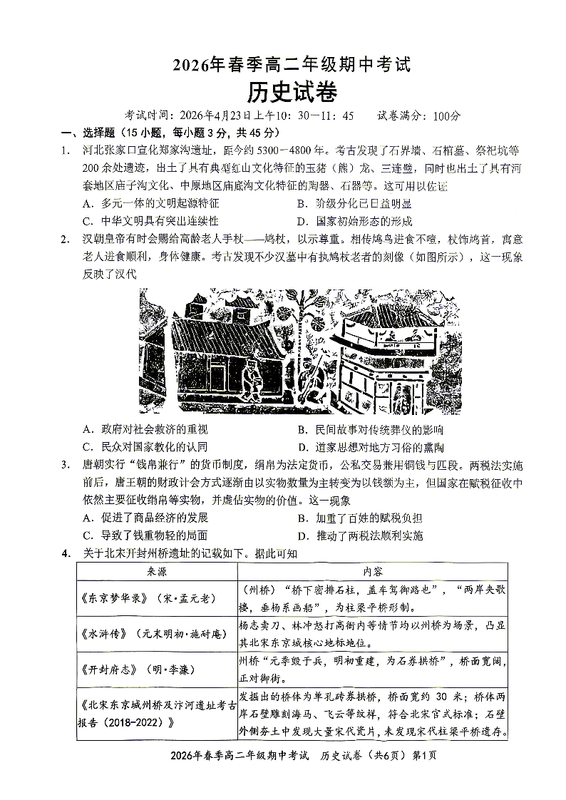 湖北省鄂东南联盟2025-2026学年高二下学期期中联考 历史.pdf