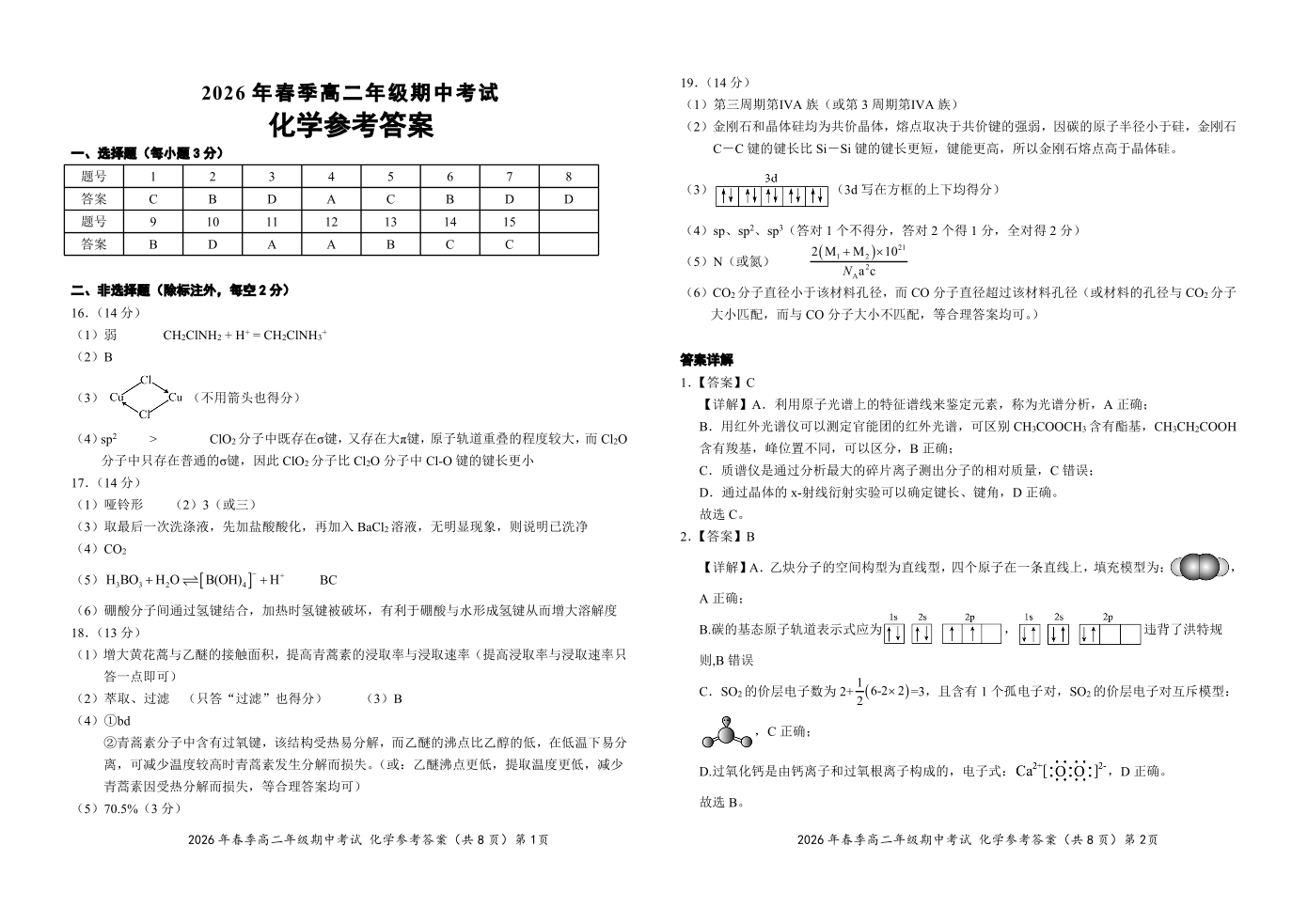 湖北省鄂东南联盟2025-2026学年高二下学期期中联考 化学答案.pdf