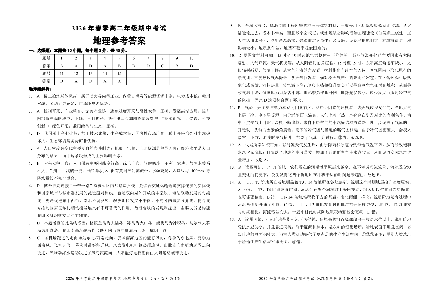 湖北省鄂东南联盟2025-2026学年高二下学期期中联考 地理答案.pdf
