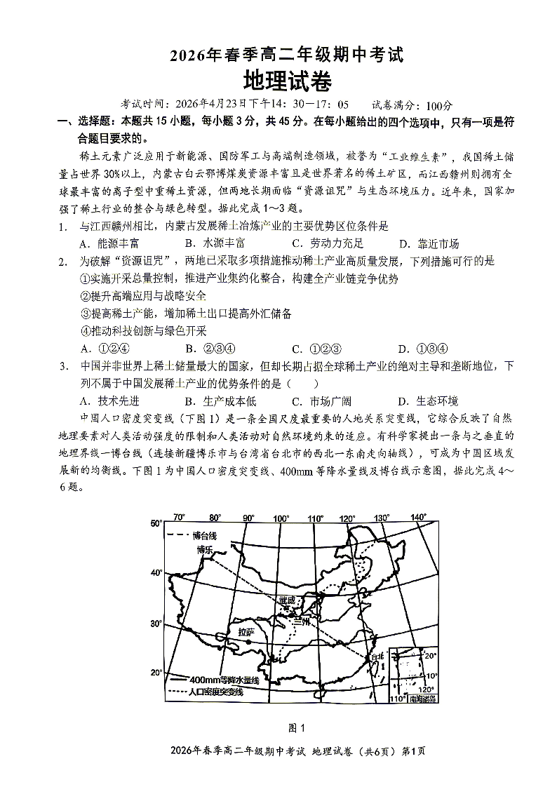 湖北省鄂东南联盟2025-2026学年高二下学期期中联考 地理.pdf