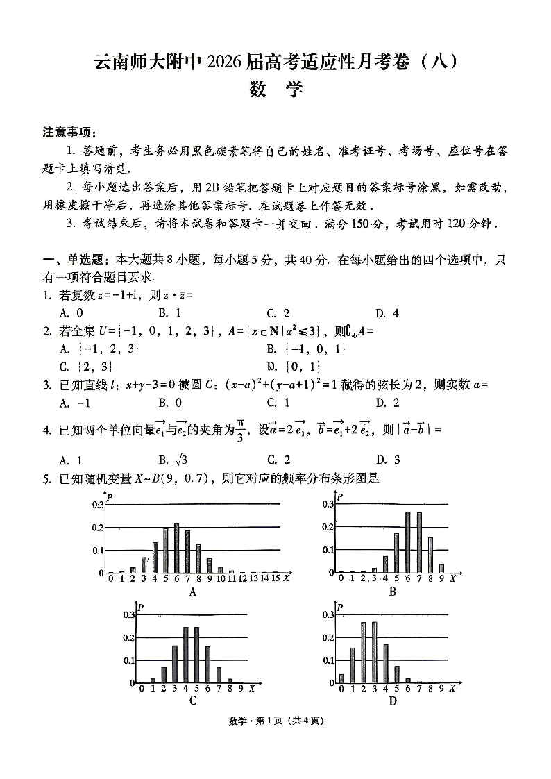 云南师大附中2026届高考适应性月考卷(八)数学试题(含答案).pdf