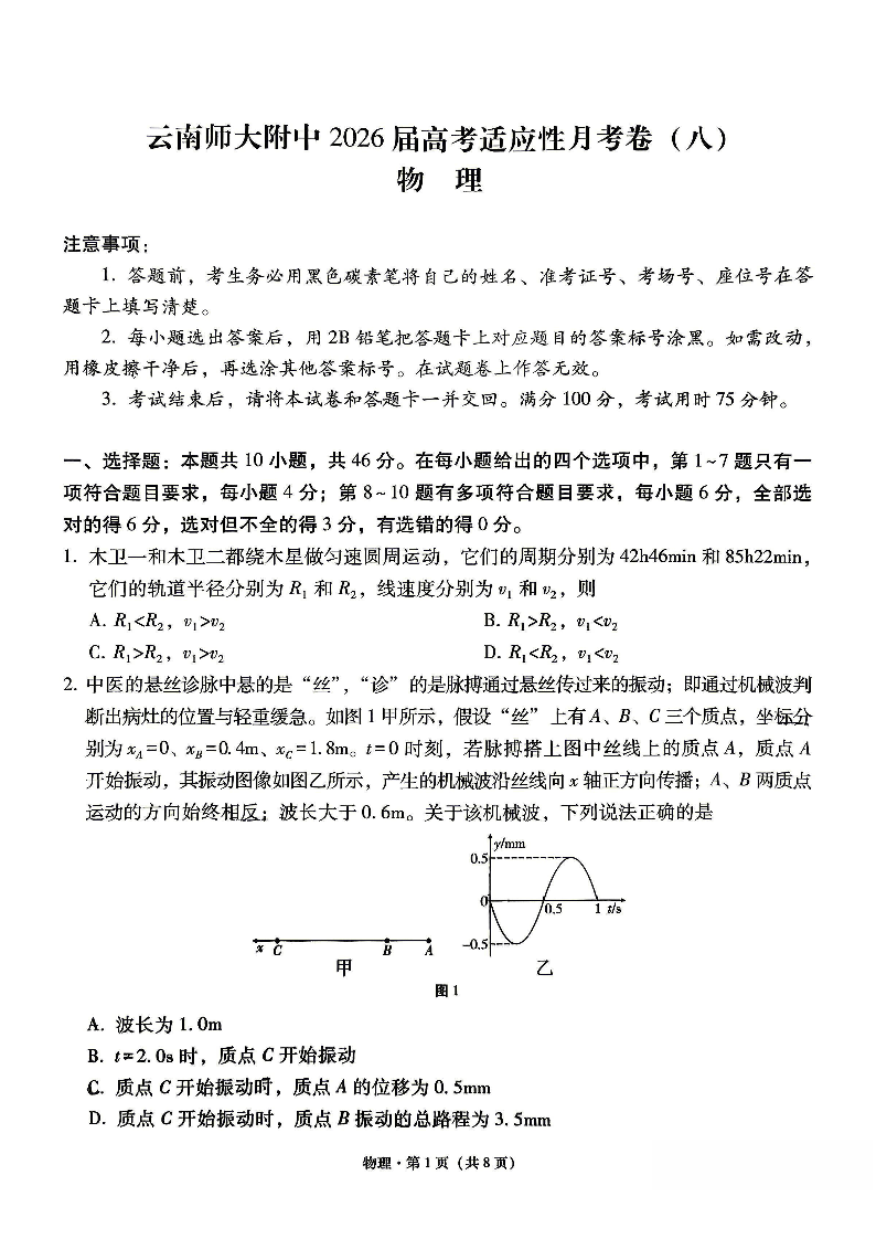 云南师大附中2026届高考适应性月考卷(八)物理试题(含答案).pdf