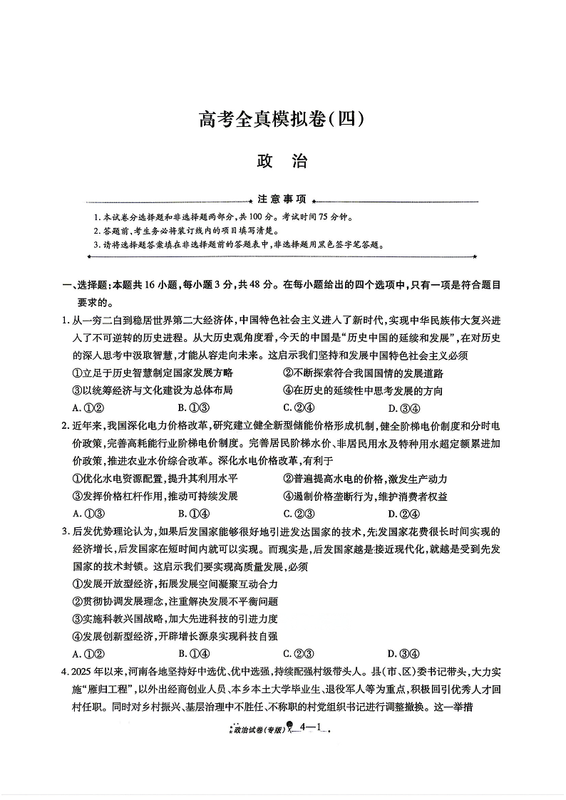 陕西省西安市2026届高三年级4月高考全真模拟卷(四) 政治试题(含答案).pdf