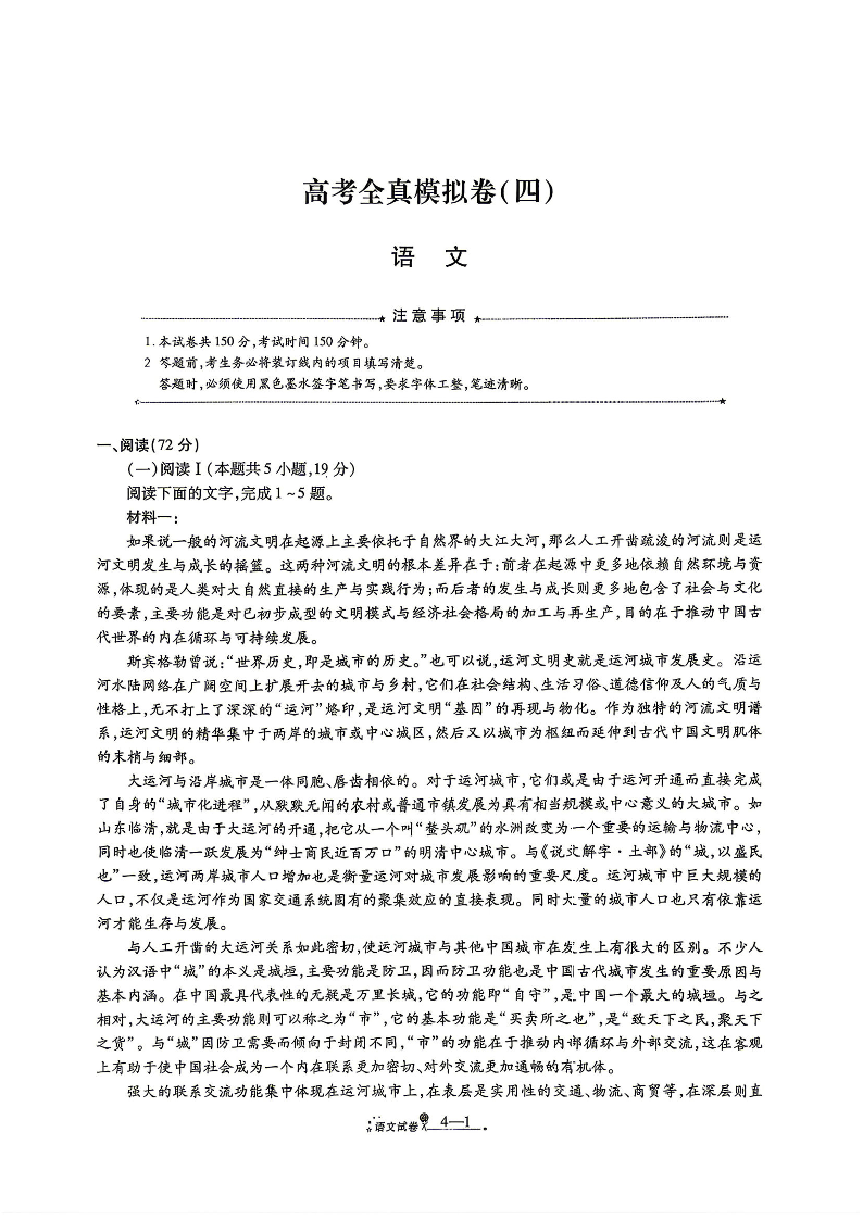 陕西省西安市2026届高三年级4月高考全真模拟卷(四) 语文试题(含答案).pdf