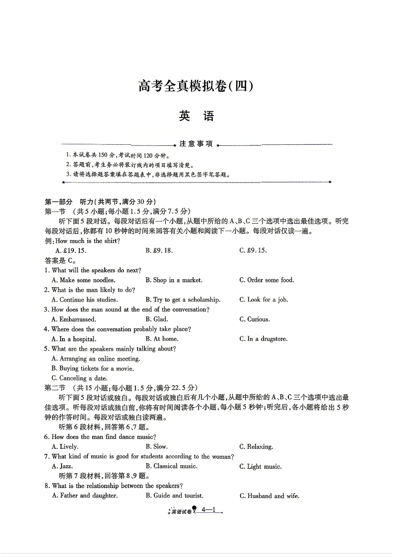 陕西省西安市2026届高三年级4月高考全真模拟卷(四) 英语试题(含答案).pdf