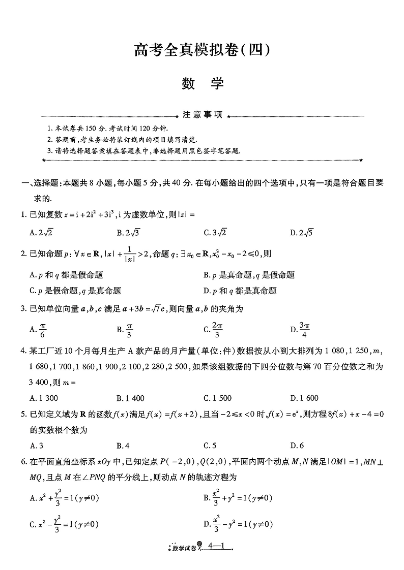 陕西省西安市2026届高三年级4月高考全真模拟卷(四) 数学试题(含答案).pdf
