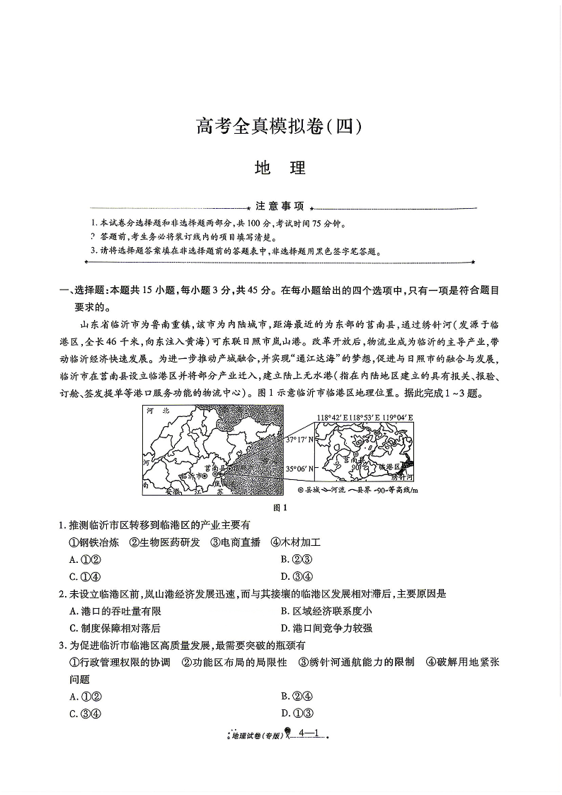 陕西省西安市2026届高三年级4月高考全真模拟卷(四) 地理试题(含答案).pdf