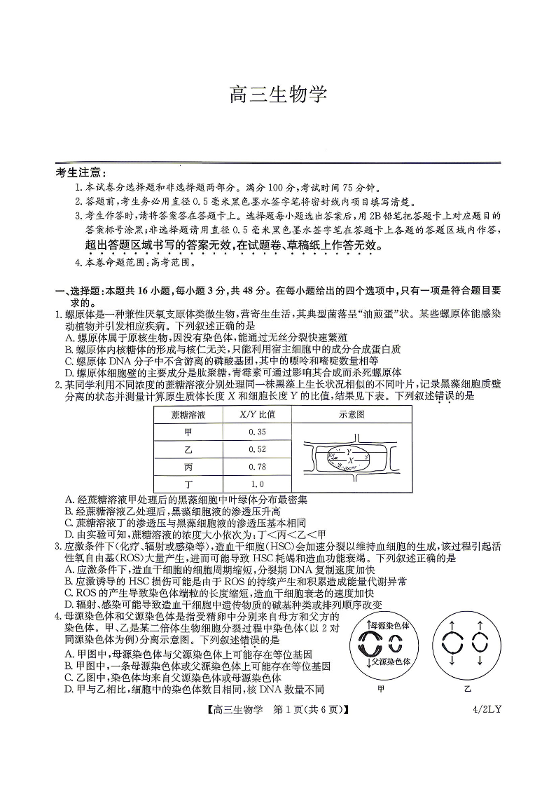 九师联盟2025-2026学年高三第二学期期中考试 生物试卷(含答案).pdf