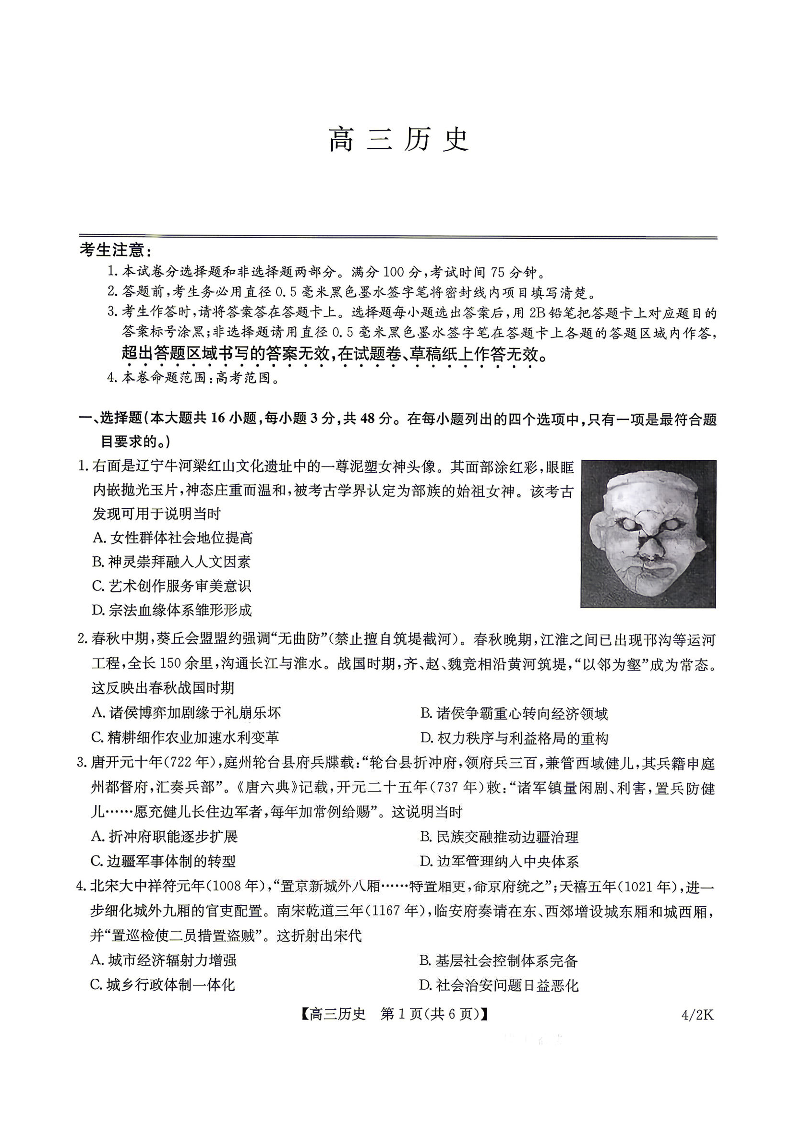 九师联盟2025-2026学年高三第二学期期中考试 历史试卷(含答案).pdf