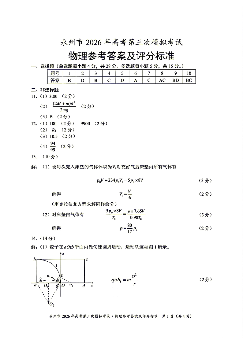 湖南省永州市2026年高考第三次模拟考试 物理答案.pdf