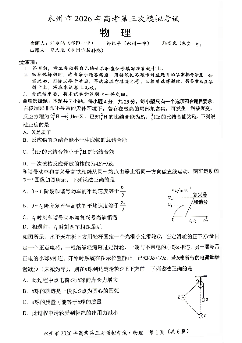 湖南省永州市2026年高考第三次模拟考试 物理.pdf